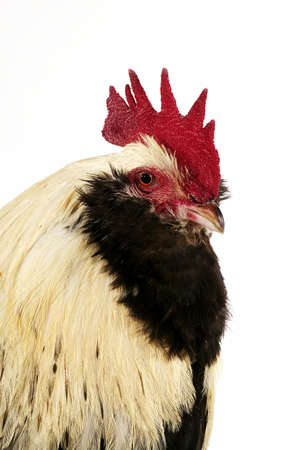 Faverolle Domestic Chicken, a French Breed, Portrait of Cock against White Background