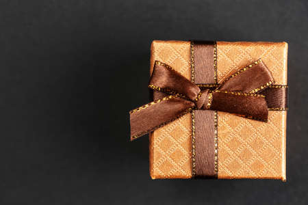 gift on a dark background, top view on a gift box, flat lay