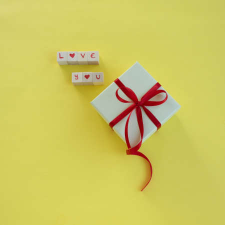 Isolated gift box with Love you on text yellow background and copy space