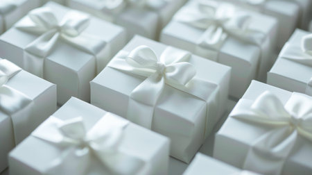 Elegant White Wedding Favor Boxes with Satin Ribbons for Special Occasions and Celebrations.