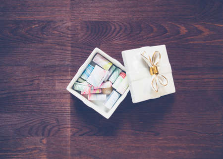 A gift box placed on an old wood.