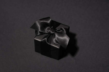 Black gift box on black background.