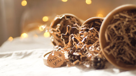 AI Generated. box wrapped in brown wrapping paper and tied with hemp rope twine