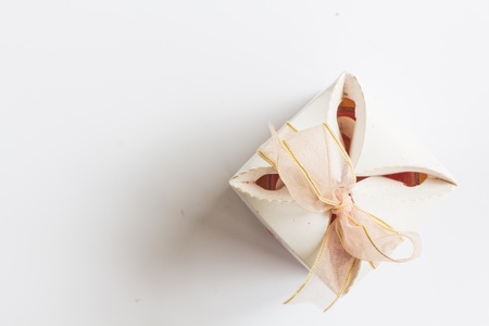 one small gift with beautiful bow knot on grey background
