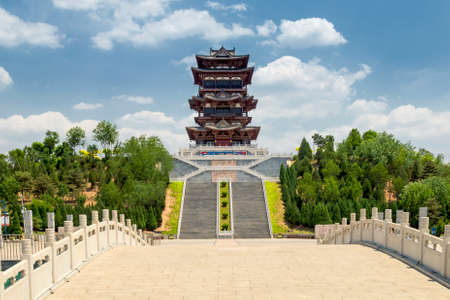 Ancient Chinese architecture in the mist, Luoyang, Henan, China