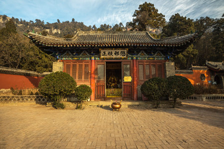 Beautiful landscape view of an ancient Chinese temple in the morning.