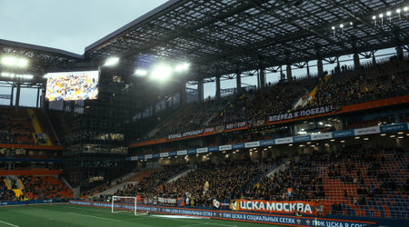 October 27, 2019, Moscow, Russia. Fans of the CSKA football club on the spectator stand before the start of the match.