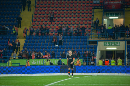 Kharkiv, Ukraine - December 10, 2019: Metallist Arena before the match UEFA league champions Atalanta - Shakhtar. Low key photo