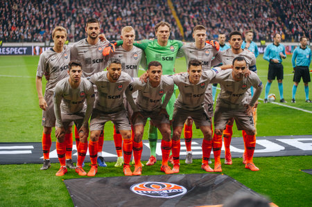FRANKFURT AM MAIN, GERMANY - February 21, 2019: Team Shakhtar Donetsk. Football stadium Commerzbank Arena, the match UEFA League Europa