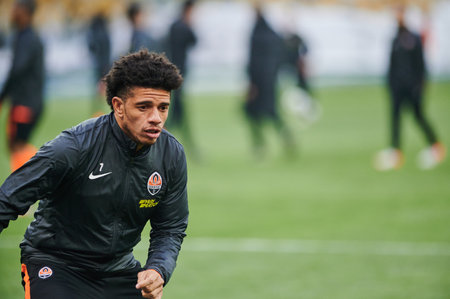 Kyiv, Ukraine - December 12, 2018: Taison, defender of Shakhtar during the UEFA Champions League match between Shakhtar Donetsk vs Olympique Lyon