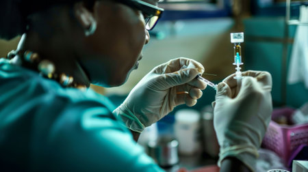 A close-up of a healthcare worker's hands as they meticulously prepare a vaccine, symbolizing hope and the pivotal role of immunization in public health.