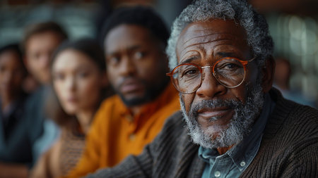 Portrait of senior African American man with his friends in the background