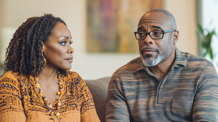 Mature couple is participating in a couples therapy session, listening intently to a psychologist
