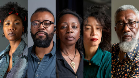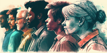 Face portrait of diverse people together looking straight. Multiracial concept. distinct generative AI image.