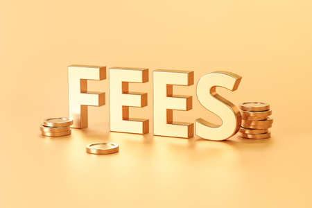 Gold fee sign and paying tax concept on golden background with hidden charge rate. 3D rendering.