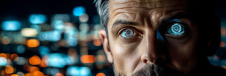 Futuristic Technology A Robotic Eye Overlooking a Vibrant Cityscape of Tomorrow s Innovations.