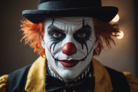 Creepy clown with menacing smile