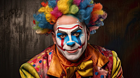 portrait of a happy painted clown in the circus. generative ai.