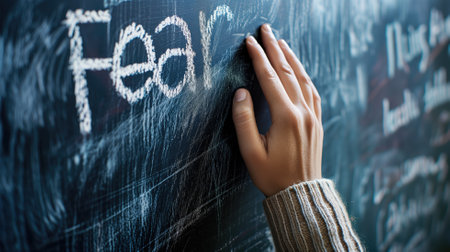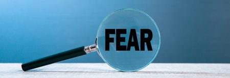Word fear inscription. Concept of being afraid and feeling anxiety.