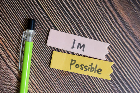 Concept of Im Possible write on sticky notes isolated on Wooden Table.