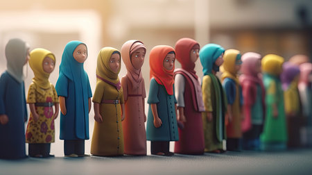 Illustration of Hijab Day, Beautiful Young Women Wearing Hijab, 3d realistic