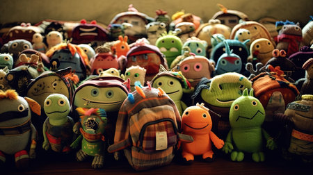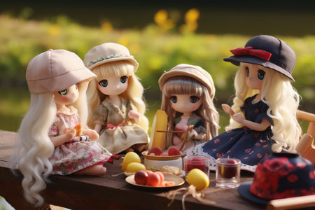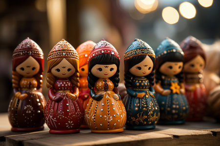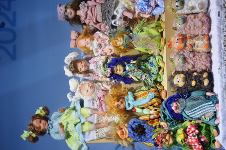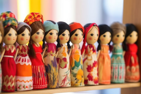 vertical shot of finished tiny dolls lined up, created with generative ai