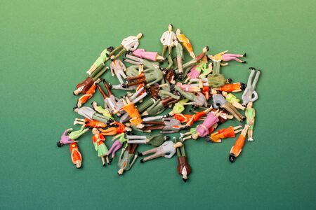 Miniature people : Citizens wearing masks to protect against viruses. People wear masks to prevent New type COVID-19 pneumonia. Coronavirus and Covid-19 concept. Selective focus