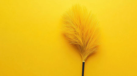 A stunning yellow feather artfully arranged against a matching bright yellow background creates a lively and uplifting atmosphere for home decorations.