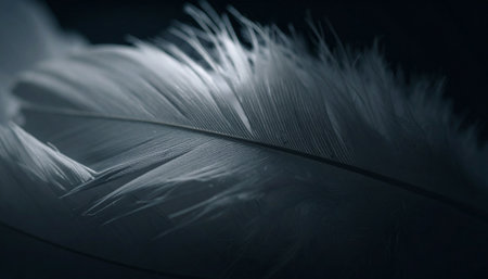 Macro close up of soft white feather texture with gentle shadows on neutral background, minimal calm and purity concept, natural light