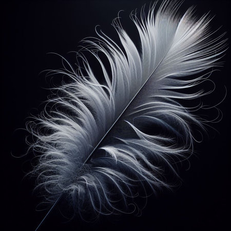 Close-up view of a feather showcasing delicate barbs and halftone texture in stunning detail