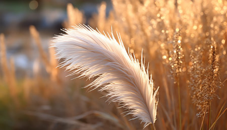 A Golden grass swaying in sunlight, creating serene atmosphere. Generative Ai