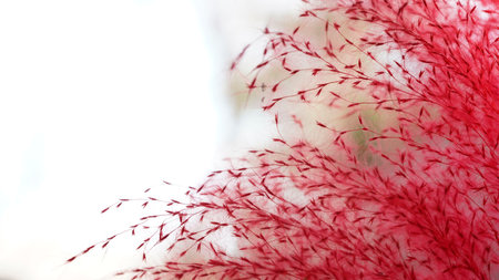 A close-up view of ethereal pink pampas grass captures the essence of tranquility and beauty in nature. The feathery plumes dance gracefully in the breeze, creating a serene atmosphere that invites reflection and calm.