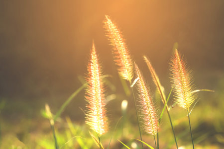 grass flowers that lie along the wind that blows through And impacted by the soft light of the sun.