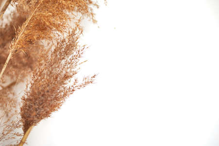 Dried grass on white background with copy space.