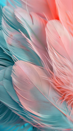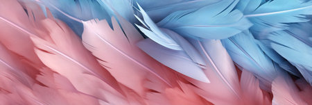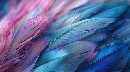 Vividly colored feathers creating a soft and ethereal background, showcasing a blend of pink and blue hues for artistic expression