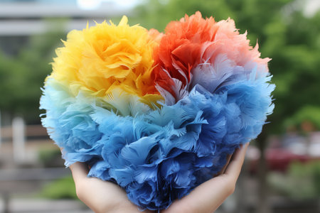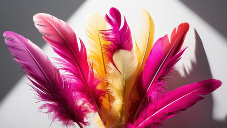 AI Generated. Colorful Feathers in Bright Pink and Yellow Tones