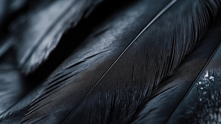 Detailed close-up of elegant black feathers showcasing intricate textures and a subtle sheen