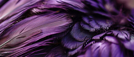 features a close up view of vivid purple feathers highlighting their texture and color.