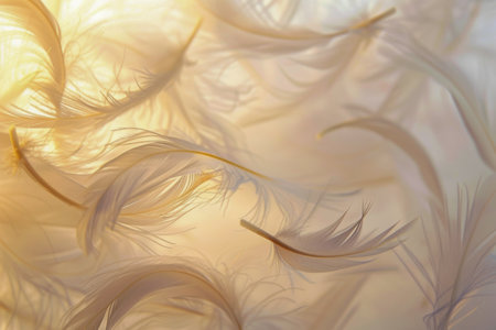 Ethereal White Feathers Descending Gracefully in Soft Light.