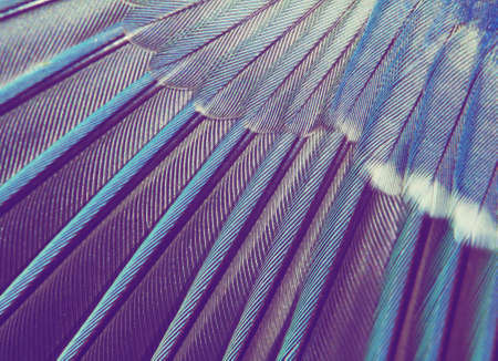 Colorful bird feathers as a background texture pattern. Macro shot.