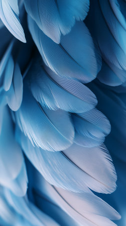 Soft blue feathers reveal stunning details and textures, illuminated by gentle light, creating a calm and tranquil atmosphere that highlights their beauty. Details matter.