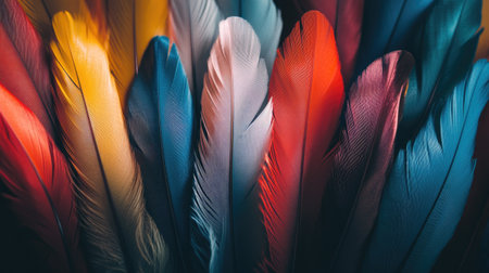 A stunning close-up of colorful feathers showcasing intricate textures and soft hues. This image highlights the delicate beauty found in nature and artistry.