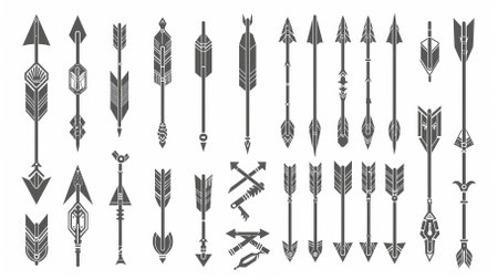 A visually striking collection of arrows featuring heart-shaped designs alongside traditional tips, ideal for conveying themes of love and celebration.