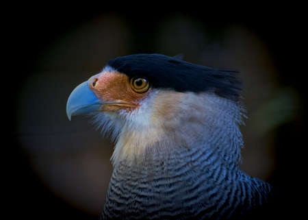 Caracara plancus or Crested Caracara standing on a branch watching over the hills