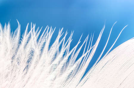 Beautiful abstract colorful white and blue feathers on white background and soft white feather texture on blue pattern and blue background, feather background, blue banners