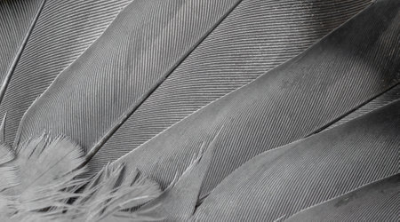 Close-up view of a feather showcasing delicate barbs and halftone texture in stunning detail