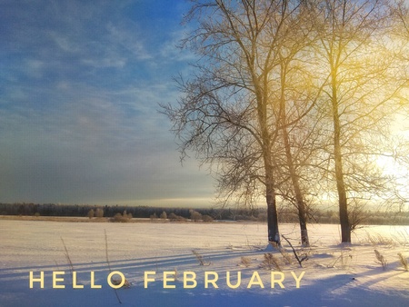 Hello February photo. The beginning of the New Year. Greeting card.