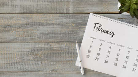 Close up white calendar page in planning concept.February