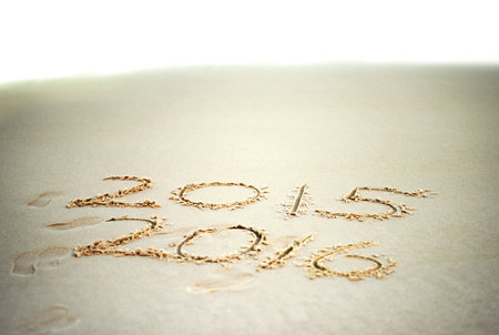 Ready for a sunny new year. the years 2015 and 2016 written in sand.
