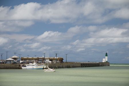 View of the Lighthouse of the Grande Jetée (large pier) at the exit of the port of Sables d Olonnes, France